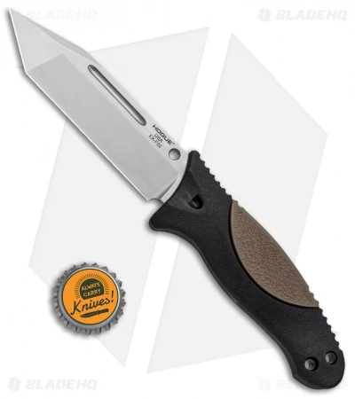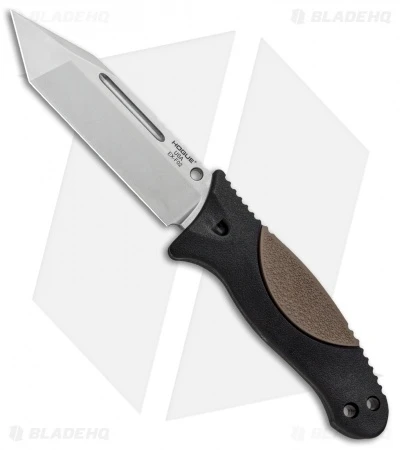 The EX-F02 is a sturdy outdoors fixed blade from Hogue Knives that features a polymer/rubber overmold handle for impressive grip and comfort. The blade has a notched portion for the thumb on the spine and a finger groove on the handle for the index finger. An ambidextrous, secure fitted polymer sheath comes standard and features an automatic retention mechanism. Allen Elishewitz design.